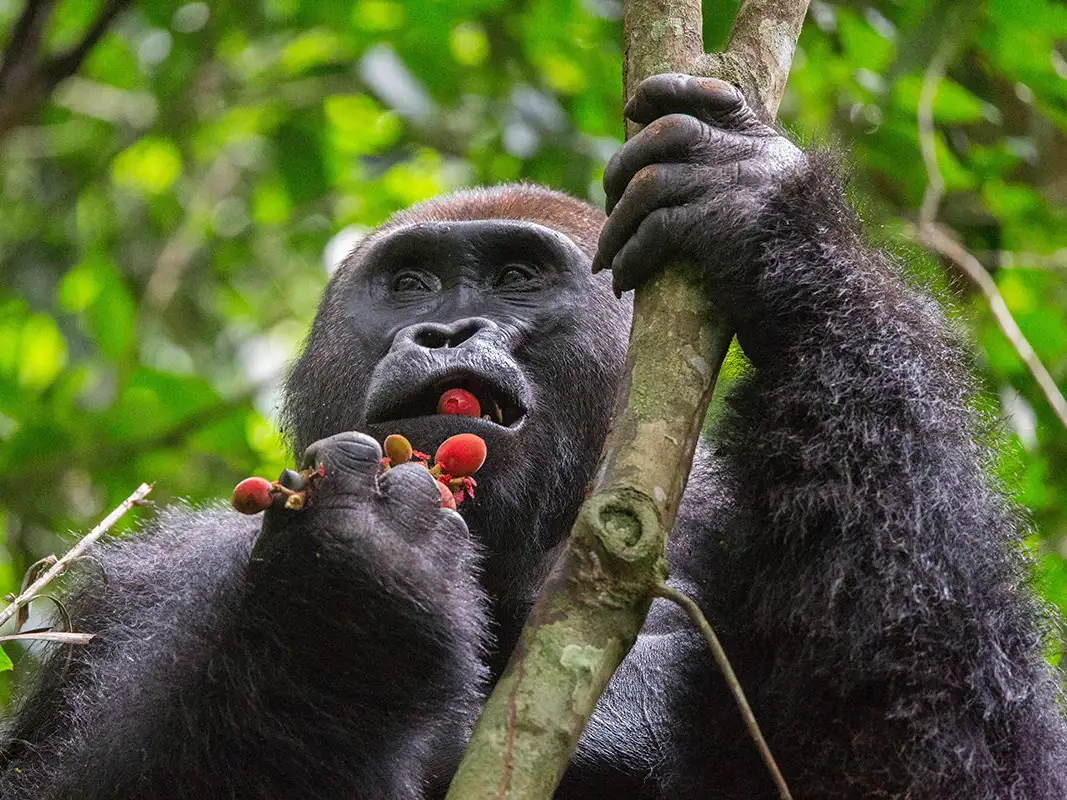 Gorillas primarily consume a vegetarian diet, focusing on plants over other food sources. Their main food sources include herbs, leaves,