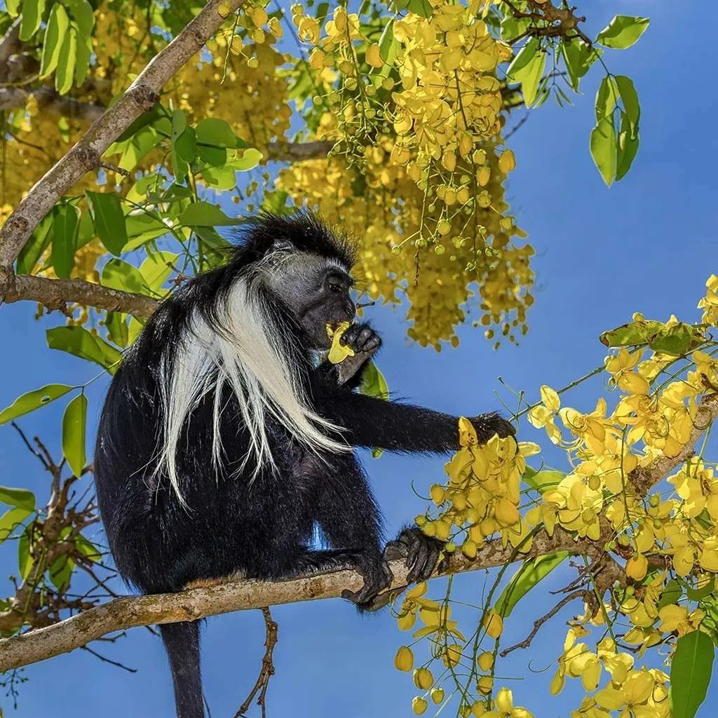 Yes, Colobus Monkeys are mainly active during daylight hours. They feed, rest and travel through the forest canopy from early morning until late afternoon, with quieter periods in midday.