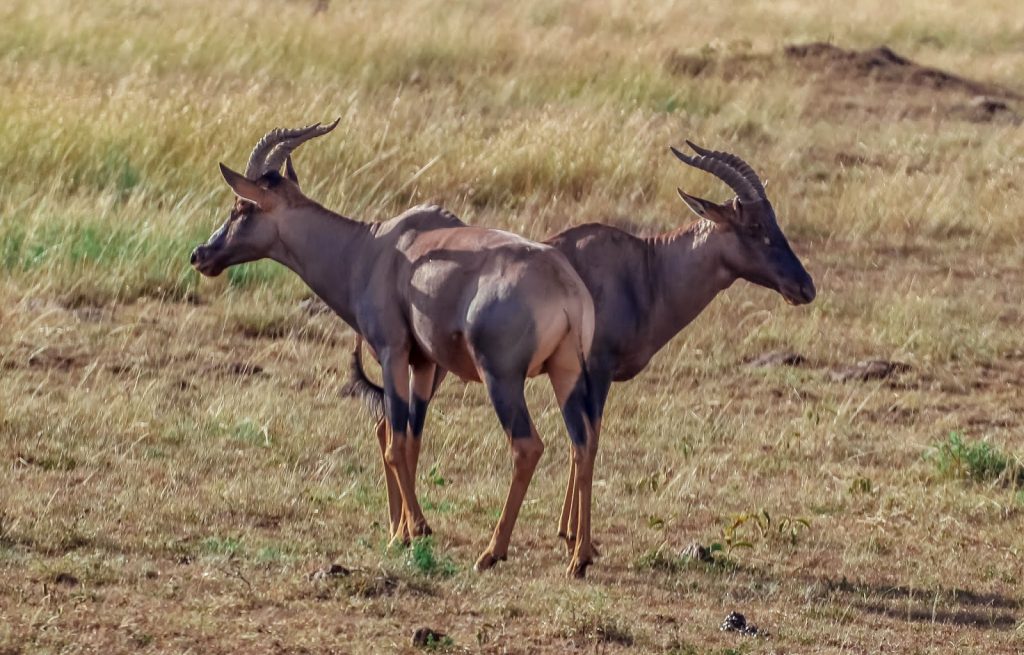 Topi are medium sized, heavier than gazelles but lighter than buffalo, with a lean, strong build that suits long runs and sudden direction changes on open plains.