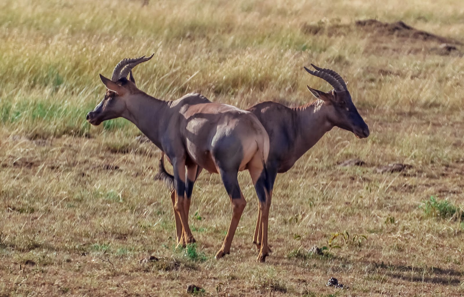 Scent marking on grass and soil helps males define territories and tells other topi who holds a patch. Herd members read these signs as they move through familiar ground.